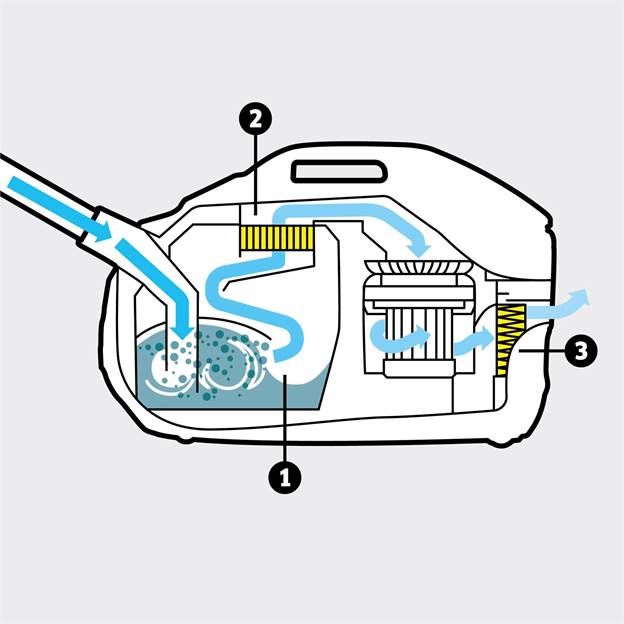 Khác với máy hút bụi truyền thống dùng túi lọc dễ tắc nghẽn, Karcher DS 6 sử dụng công nghệ lọc nước tiên tiến độc quyền của Đức.