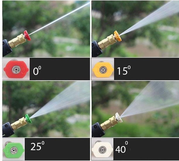 🎯 Béc phun 0°, 15°, 25°, 40°: Điều chỉnh linh hoạt, phù hợp cho từng loại bề mặt và nhu cầu vệ sinh.